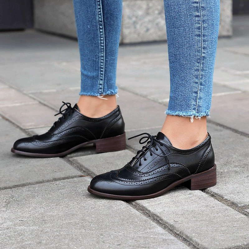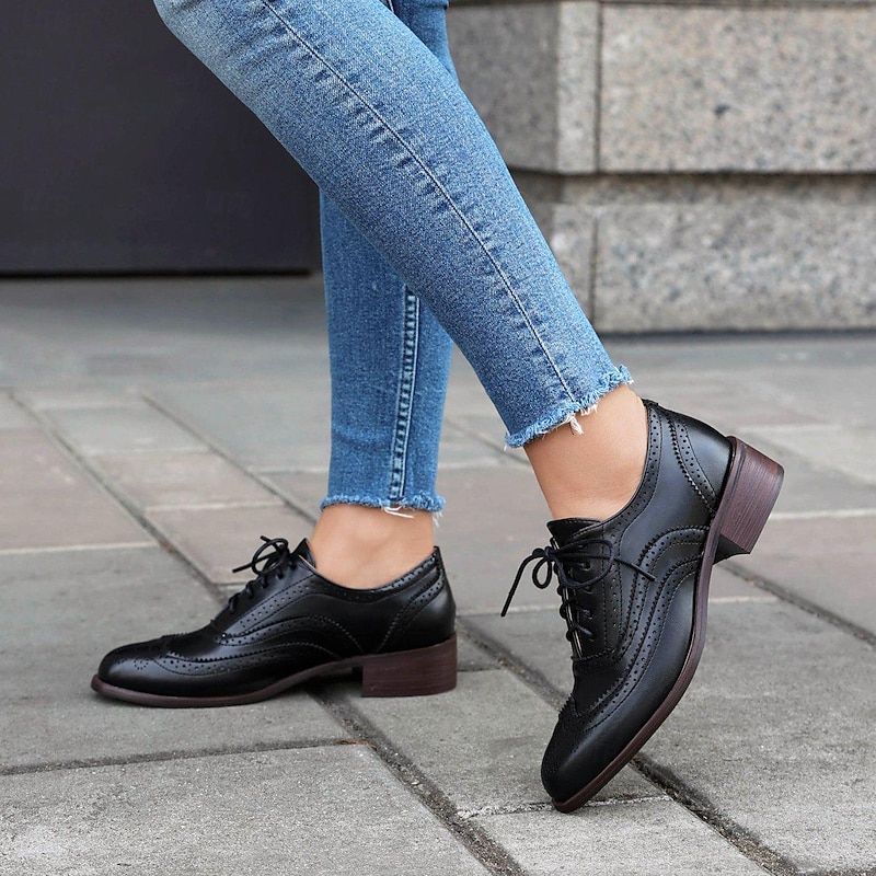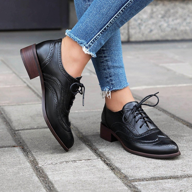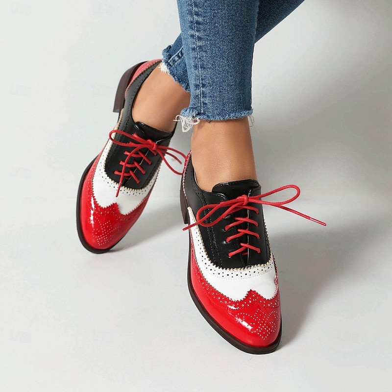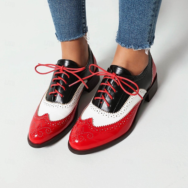 Highlights [Fabric] : Crafted from premium PU leather, these women's Oxford shoes offer both durability and a sophisticated appearance. The high-quality material ensures a polished look while providing comfort for daily wear. [Style] : These shoes feature a classic brogue design with elegant wingtip detailing and perforated patterns, complementing both casual and formal attire. The pointed toe adds an extra touch of refinement, while the color-block design offers modern versatility. [Design Highlights] : The lace-up closure allows for a snug and adjustable fit, making these shoes practical for various foot shapes. The sturdy block heel provides stability, while the overall design maintains a timeless elegance, ideal for women who appreciate a vintage aesthetic with modern functionality. [Occasions] : Perfect for a range of outings, from professional office settings to casual gatherings. Whether attending a business meeting or enjoying a weekend event, these Oxfords enhance any outfit with their stylish and adaptable nature. [Size Notice] : Available in a wide range of sizes from US5.5 to US10.5; please refer to the size chart provided by the supplier to ensure the perfect fit.
