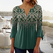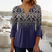 More information about Women's T shirt Long Sleeve Henley T Shirt Blouse Floral Vintage Basic 3/4 Length Sleeve Round Neck Regular Tops Casual Weekend Buttons Print Blue Purple Green Prefall