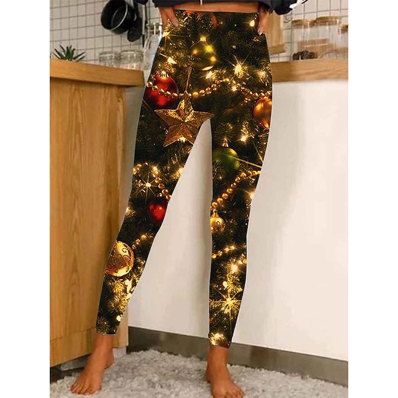 Women's Christmas Leggings Stretchy Twinkle Star Moisture Wicking Yoga Fitness Tennis Tights Stretchy Spandex Winter Sports Activewear Cropped Leggings 10