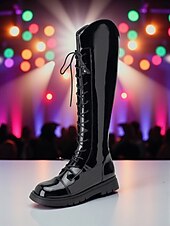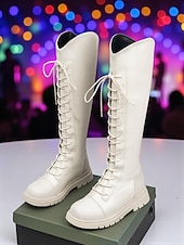 More information about Korean Idol Inspired Pop Star Costume Shoes Girls' White Lace-Up Knee High Boots with Chunky Sole Fashion Performance Footwear for Dance and Stage Outfits