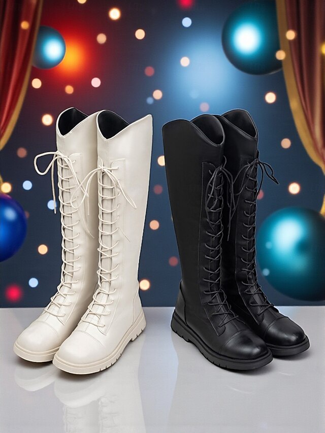 HOT ! Korean Idol Inspired Pop Star Costume Shoes Girls' White Lace-Up Knee High Boots with Chunky Sole Fashion Performance Footwear for Dance and Stage Outfits