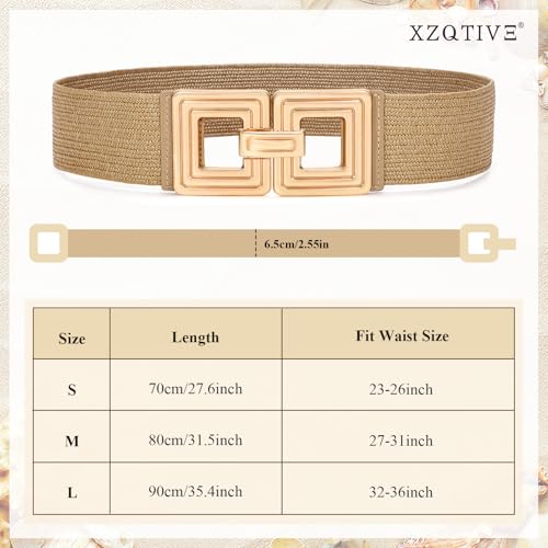 XZQTIVE Woven Elastic Belts for Women Wide Rattan Waist Belt for Summer Dress with Vintage/Round Buckle Raffia Belt 5