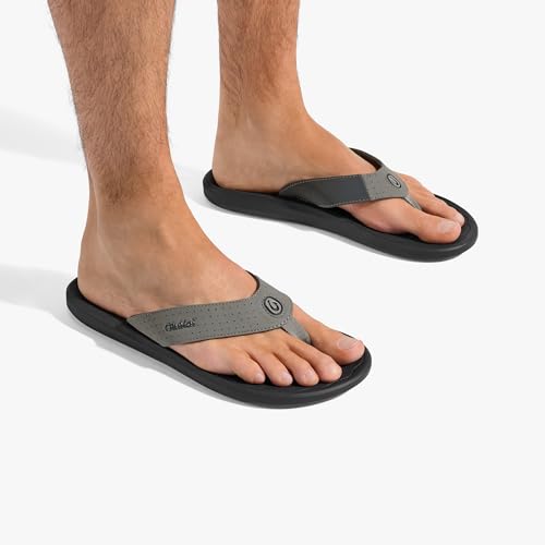 HOT ! OLUKAI Ki'i Men's Beach Sandals, Quick-Dry Flip-Flop Slides, Water Resistant & Lightweight, Compression Molded Footbed & Ultra-Soft Comfort Fit