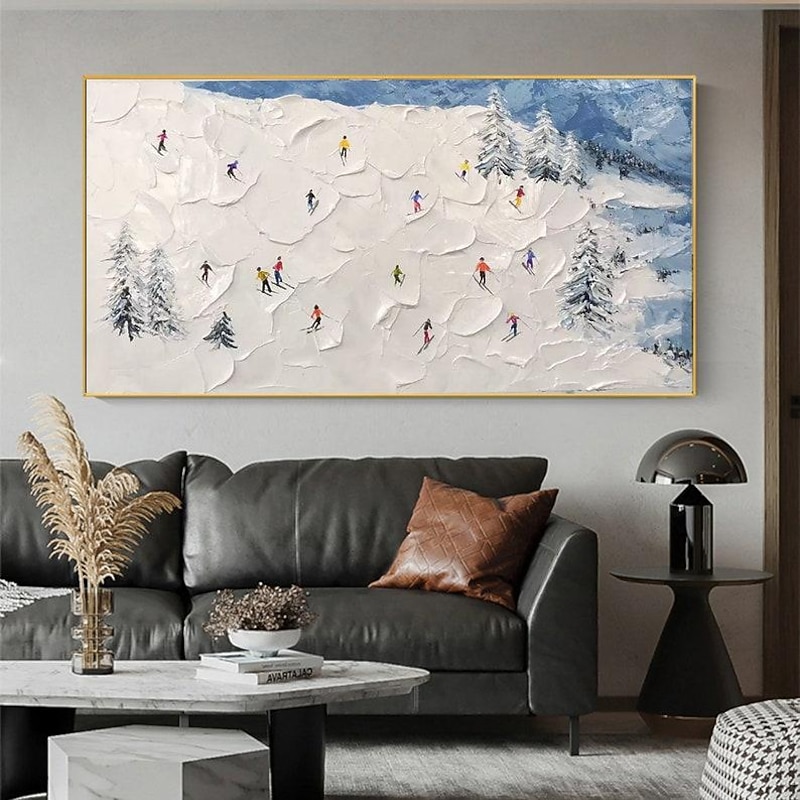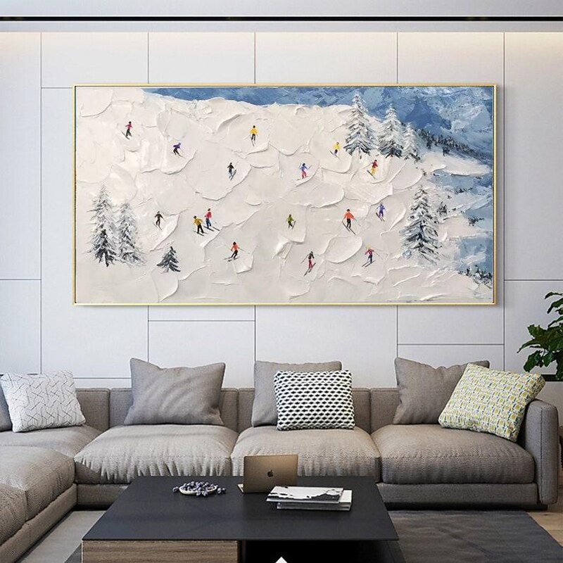More information about Mintura Handmade Ski Resort Scenery Oil Paintings On Canvas Wall Art Decoration Modern Abstract Picture For Home Decor Rolled Frameless Unstretched Painting