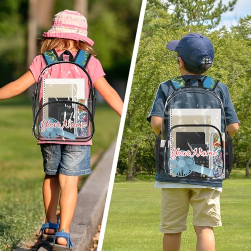 • PERSONALIZED CLEAR BAG: Each clear backpack strap is printed with exquisite patterns. Various patterns are available for you to choose from. Please click the "Customize Now" button and enter the name you want to customize