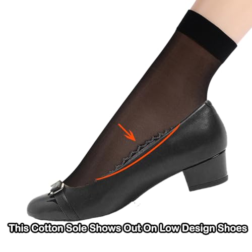 Womens 50D Sheer Ankle Nylon Socks With Cotton Bottom 12 Pairs Ankle Tights Hosiery 6