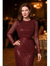 $159.99 - Gold Sequin Beaded Mermaid / Trumpet Sheath / Column Evening Gown Elegant Formal Dress Formal Wedding Floor Length Long Sleeve Crew Neck Sequined with Geometric Patterns 2025 2025. Shop for cheap Mermaid Evening Dresses online? Buy at lightinthebox.com on sale today!
