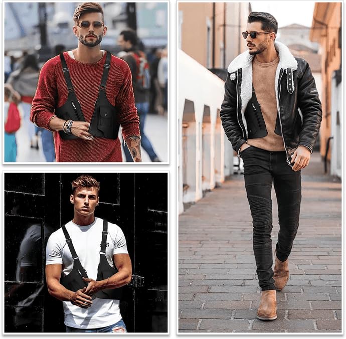 • ANTI-THEFT DESIGN -- The innovative anti-theft design makes the hidden holster bag become your first choice when you go out. It can keep valuable items hidden from pickpockets under your jacket. You can store many small things in it, such as a cellphone, wallets, keys, pens, passports, cash, earphones, glasses, mini LED flashlight, etc.