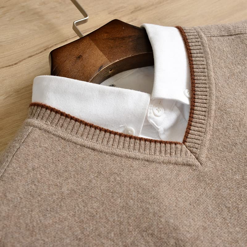 Alloaone Men V-Neck Winter Solid Cashmere Sweater Thickening Business Warm Pullover Base Sweater 7