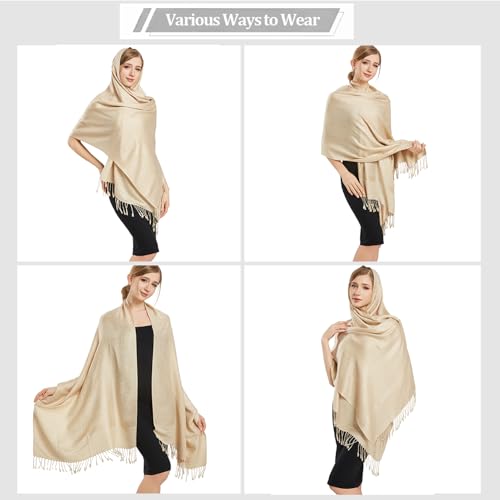 vimate Champagne Pashmina Shawl Wrap-Classic Paisley Pattern Pashminas Scarfs for Women Evening Dresses with Fringes(Style 1-Champagne) 6