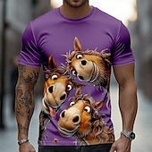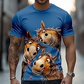 HOT ! Men's Horse Funny T Shirt Short Sleeve T shirt 3D Print Crew Neck Shirt Exaggerated Designer Party Holiday Lake Blue Black White Summer Spring Clothing Apparel S M L XL XXL XXXL