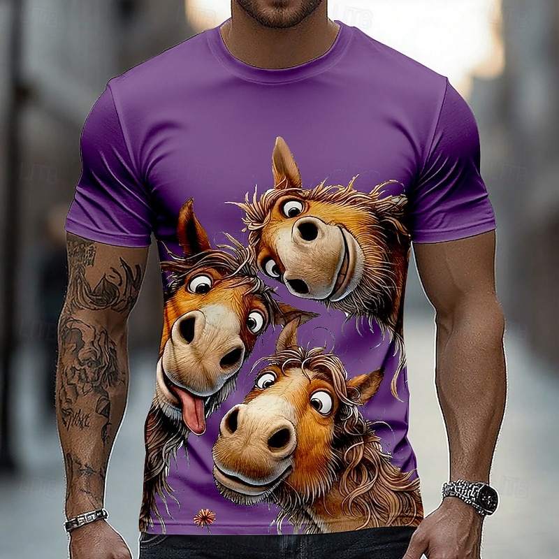 Men's Horse Funny T Shirt Short Sleeve T shirt 3D Print Crew Neck Shirt Exaggerated Designer Party Holiday Lake Blue Black White Summer Spring Clothing Apparel S M L XL XXL XXXL 9
