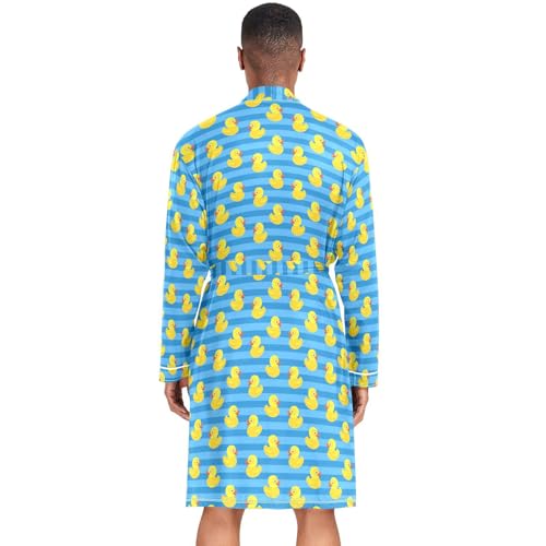 HOT ! Men's Robe Lightweight Long Sleeve Kimono Bathrobe with Pockets Yellow Rubber Duck Nightgown Shower Robe