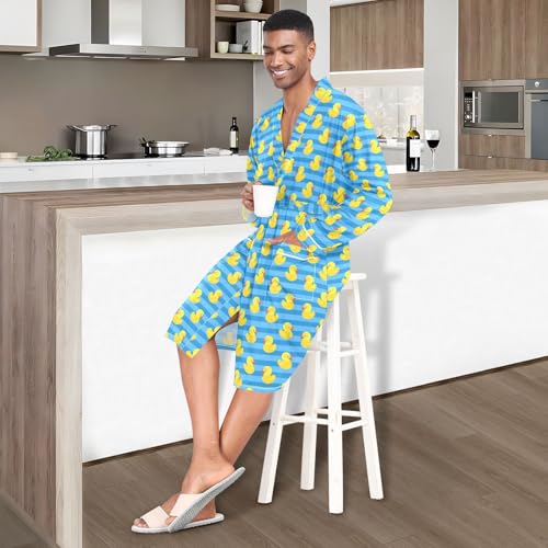 Men's Robe Lightweight Long Sleeve Kimono Bathrobe with Pockets Yellow Rubber Duck Nightgown Shower Robe 5