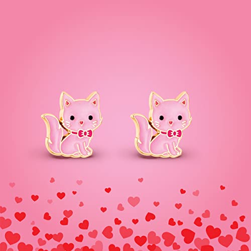 GIRL NATION Earrings for Girls Ages 5 and Up, Hypoallergenic Earrings in Pink Kitty Design 2