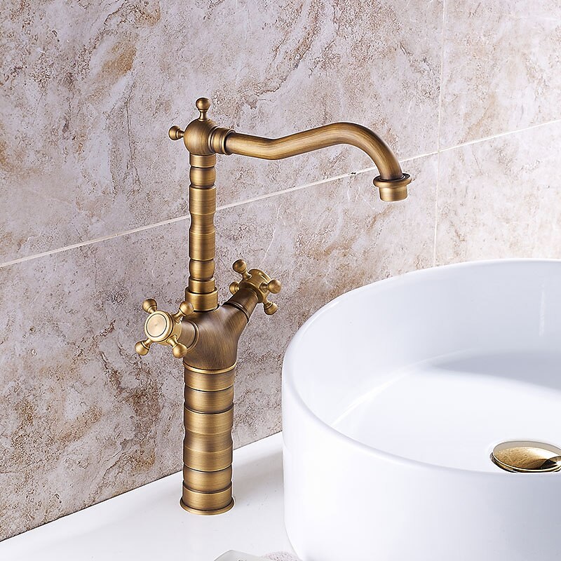 More information about Antique Copper Faucet with Drain,Pre Rinse Rotatable Widespread Centerset Two Handles One Hole Bath Taps with Hot and Cold Switch