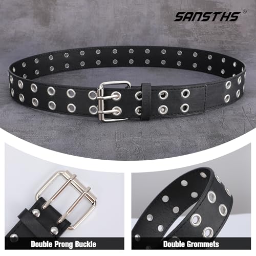 More information about SANSTHS Women Double Grommet Studded Belts, Black Leather Belt for Women Men Punk belt