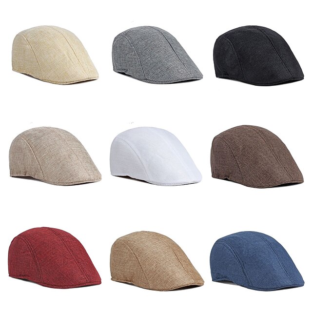 Men's Flat Cap Black White Polyester Pure Color Simple 1920s Fashion Holiday Street Dailywear Weekend Pure Color Portable Comfort Fashion 17