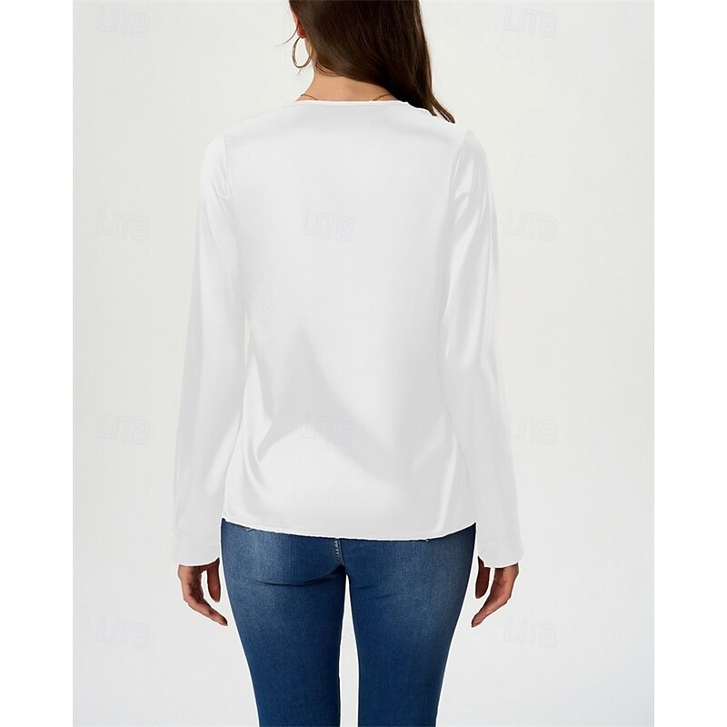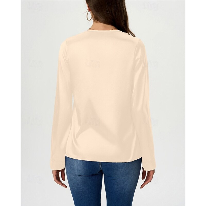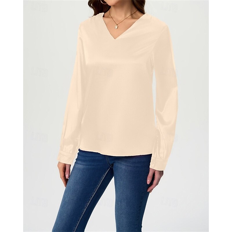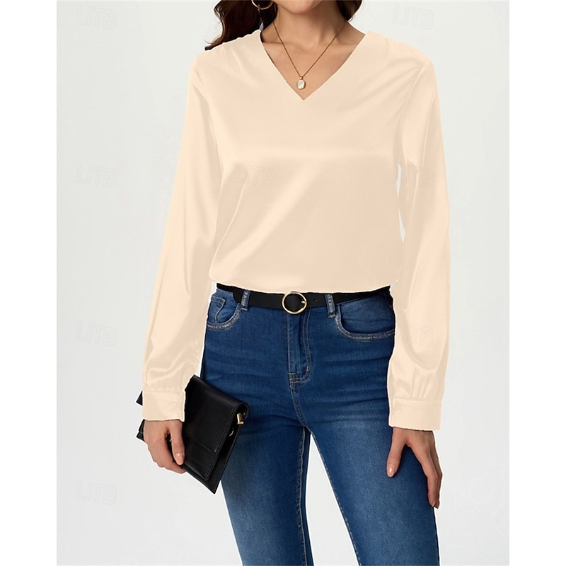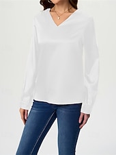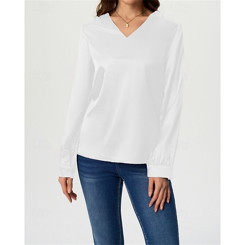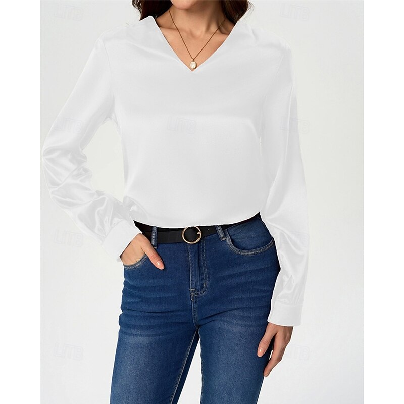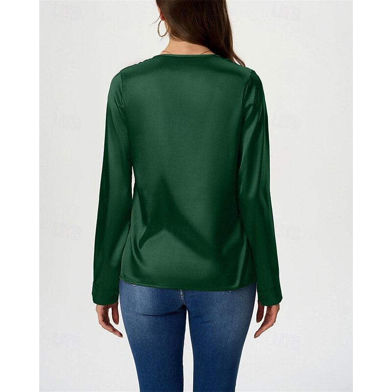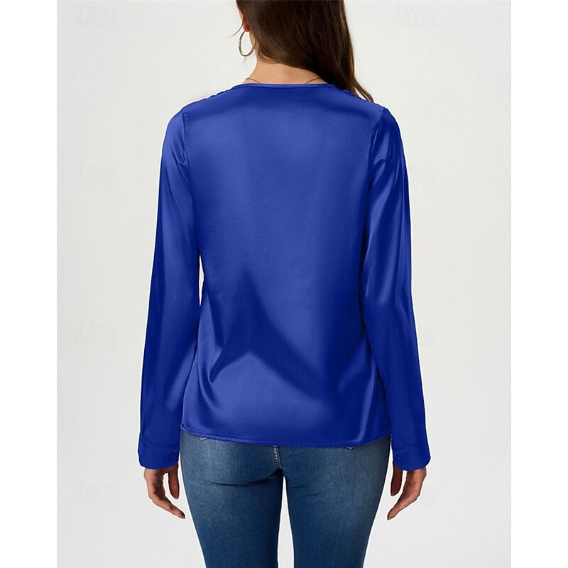 More information about Women's Shirt Elegant Dressy Satin Solid Color Stylish Casual Long Sleeve V Neck Regular Tops Daily Going out Black White Wine Royal Blue Green Spring Fall
