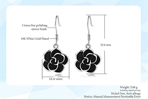 18K Rose Gold Plated Black Rose Flower Hook Earrings 5