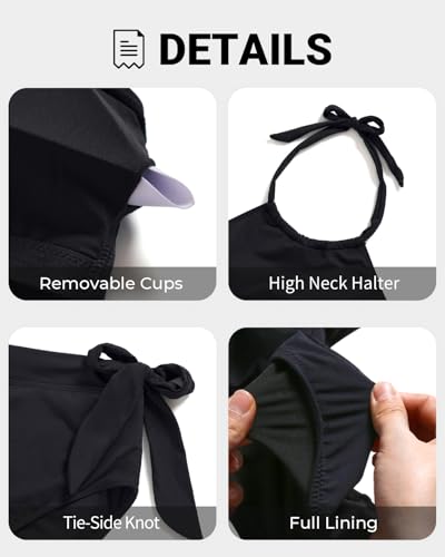 • High Waisted Swimsuit:Our 2 piece swimsuits for women are thoughtfully designed with removable padding, a high-neck halter top with adjustable straps, tummy control bottom, and a tie-side knot for a flattering fit.