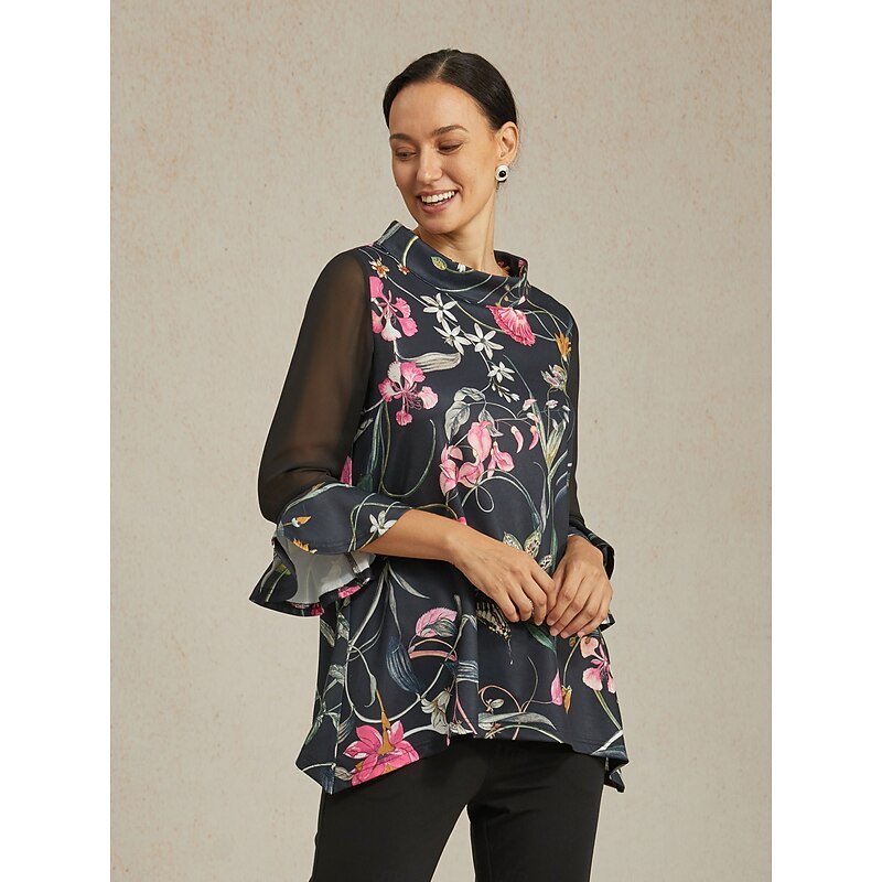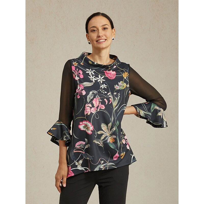 More information about Women's Blouse Black Floral Print Stretch Chiffon Sleeves Bateau Neckline Casual Daily Spring Summer Fall