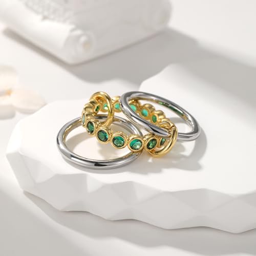Stackable Rings for Women Interlocked Stackable Ring Gold Band With Emeralds Ring 18k Gold Plated Interlocked Stackable Ring for Women Gold And Silver Rings Engagement Gold Gift for Mother 4