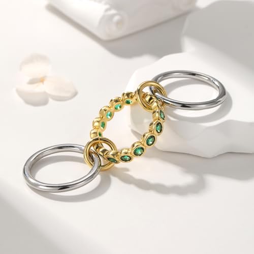 Stackable Rings for Women Interlocked Stackable Ring Gold Band With Emeralds Ring 18k Gold Plated Interlocked Stackable Ring for Women Gold And Silver Rings Engagement Gold Gift for Mother 3