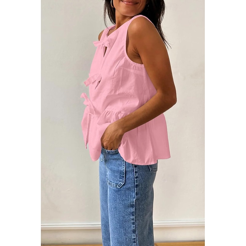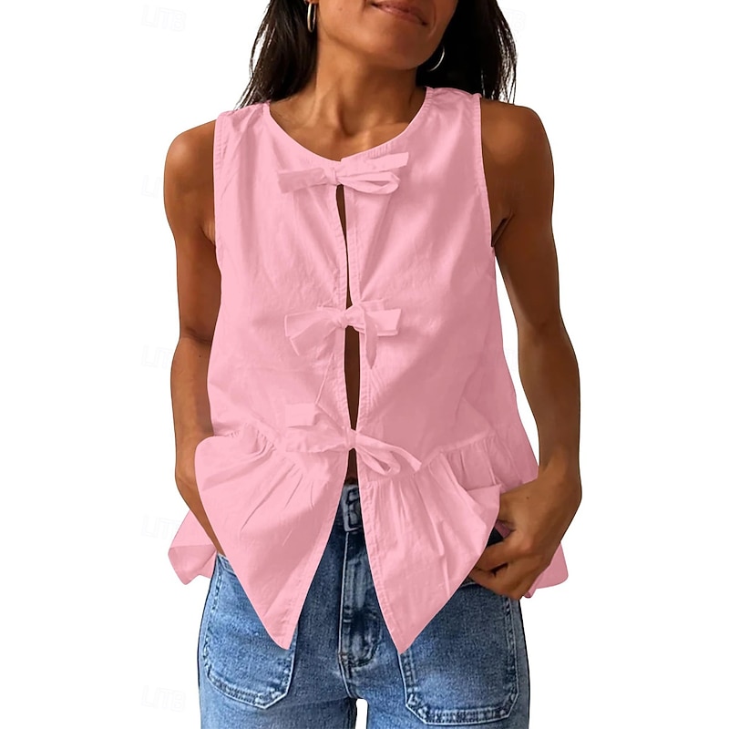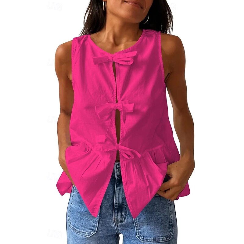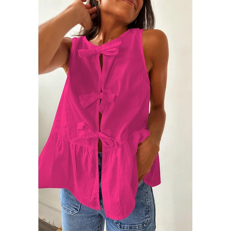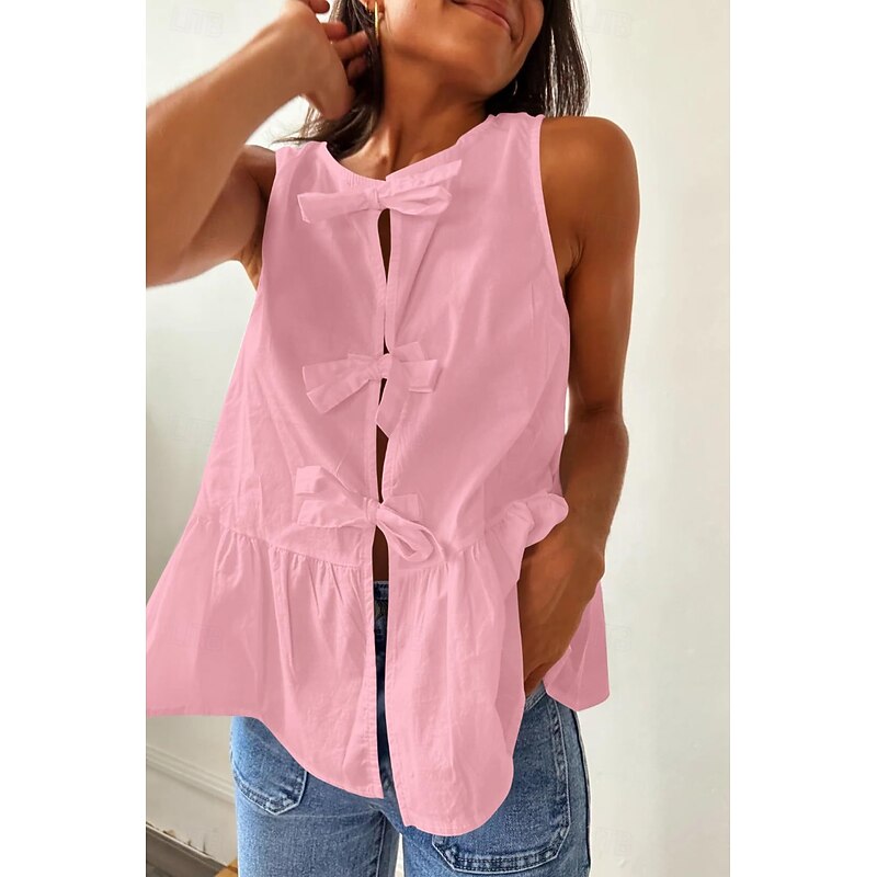 This Women's Shirt Linen Shirt Button Up Blouse Plain modern Basic Sleeveless Crew Neck Regular Tops Daily Holiday Tie Front Black White Pink Blue Rose Pink Summer combines elegant design with practical functionality. Every detail has been carefully considered to ensure you get the best possible experience. The premium construction means this product will serve you well for years to come.