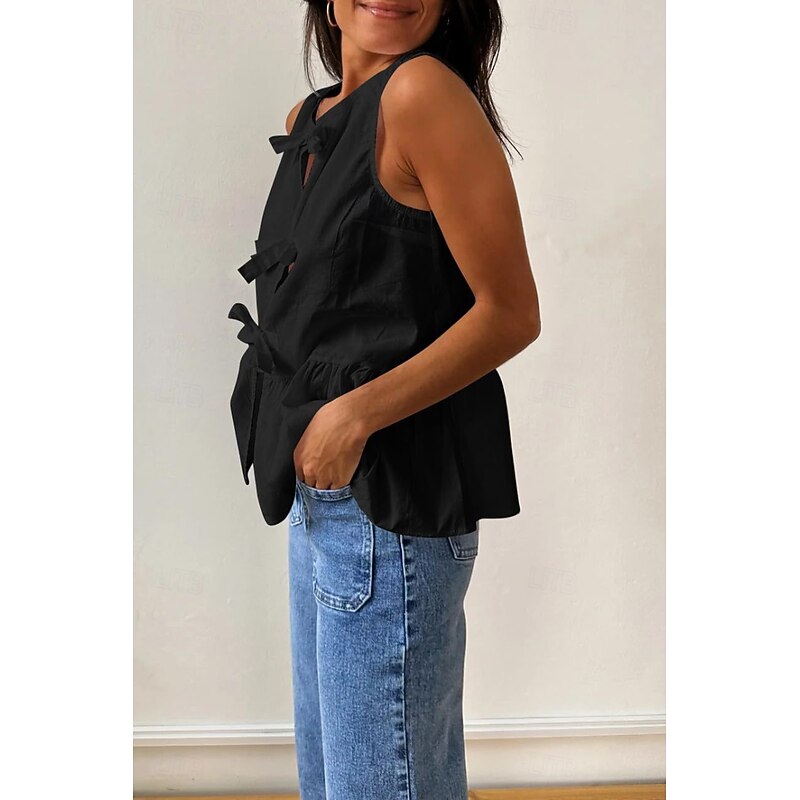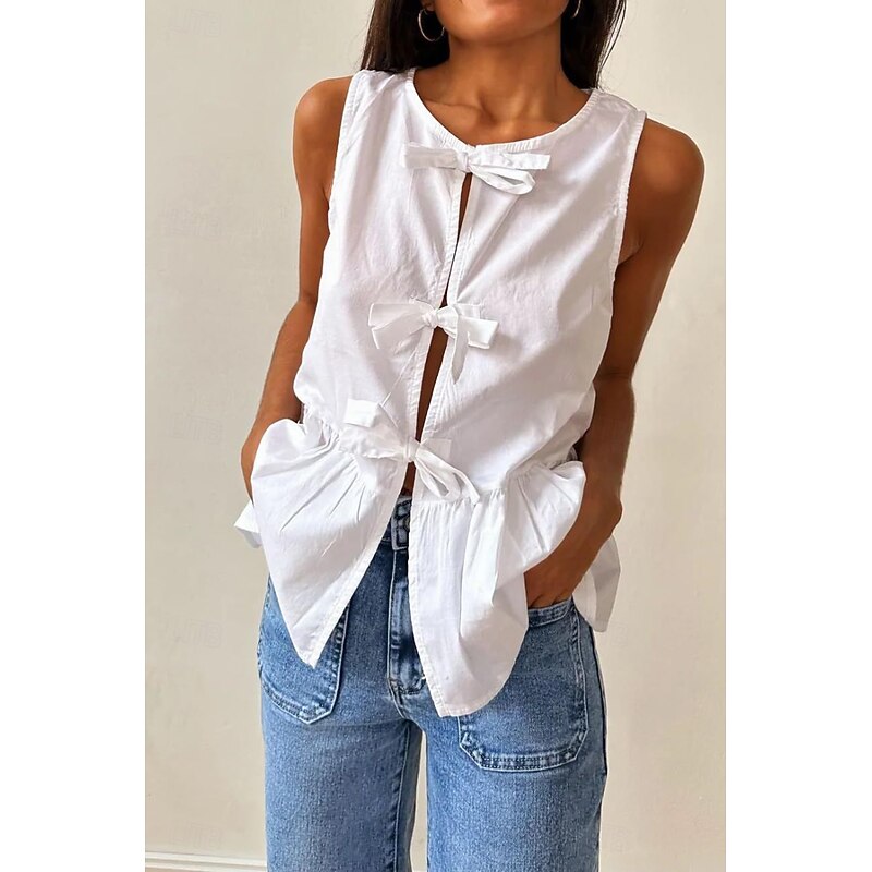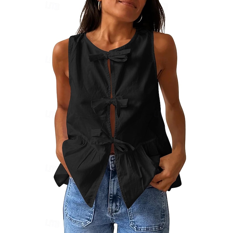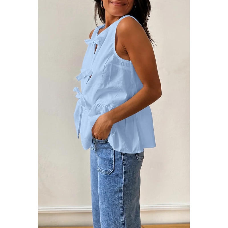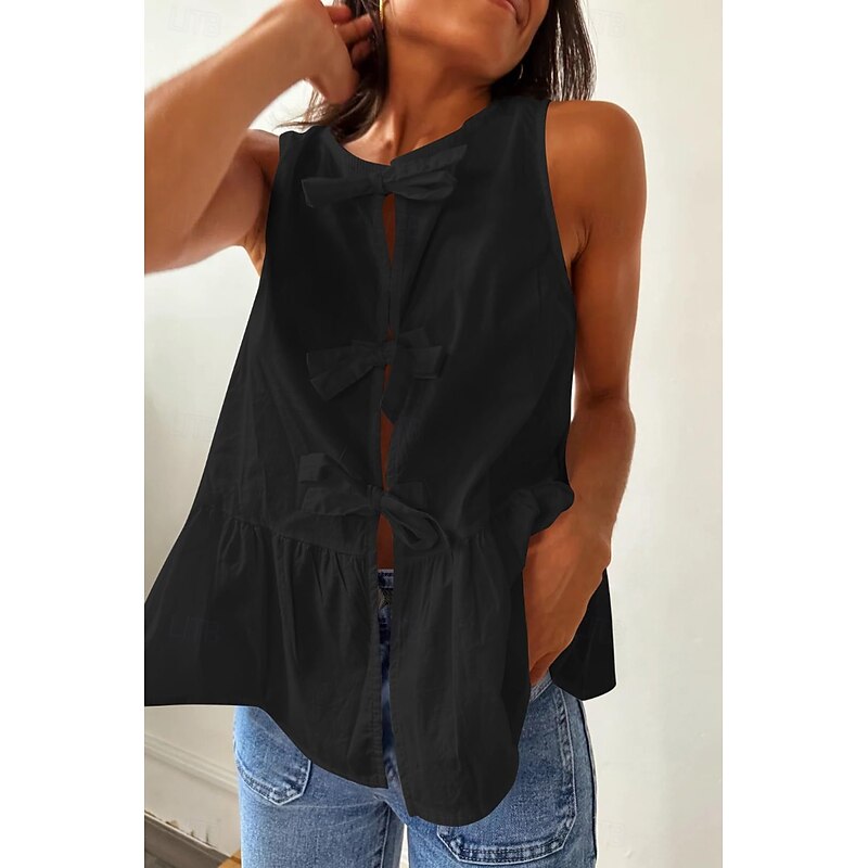 This Women's Shirt Linen Shirt Button Up Blouse Plain modern Basic Sleeveless Crew Neck Regular Tops Daily Holiday Tie Front Black White Pink Blue Rose Pink Summer combines elegant design with practical functionality. Every detail has been carefully considered to ensure you get the best possible experience. The premium construction means this product will serve you well for years to come.