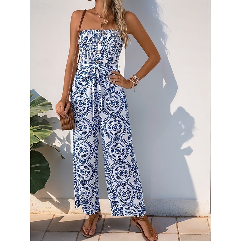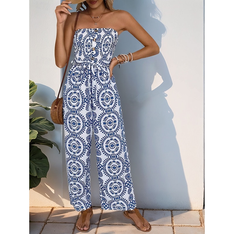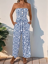 More information about Women's Normal Jumpsuit Active Floral Sleeveless Strapless Backless Pocket Vacation Daily Regular Fit Blue Summer