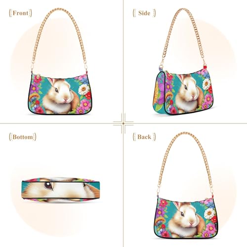 More information about Cute Rabbit Floral Teal Ladies Shoulder Bag Floral for Women Classic Formal Purse Hobo Artistic Clutch Handbag Zipper Closure