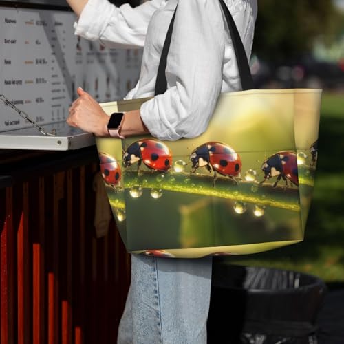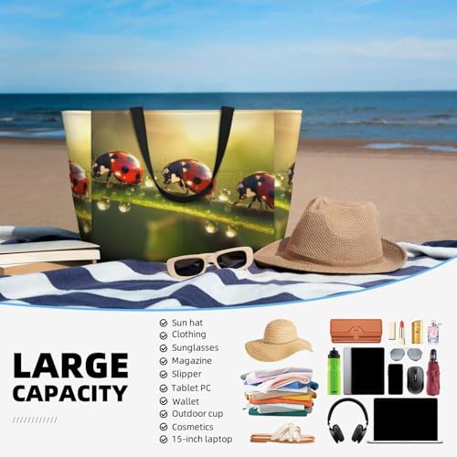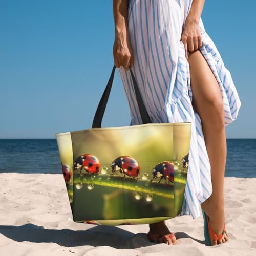 HOT ! Ladybugs Beach Bag Water Drop Sun Pool Bag for Women Waterproof Large Travel Tote with Zipper Organizer for Swimming Vacation Essentials