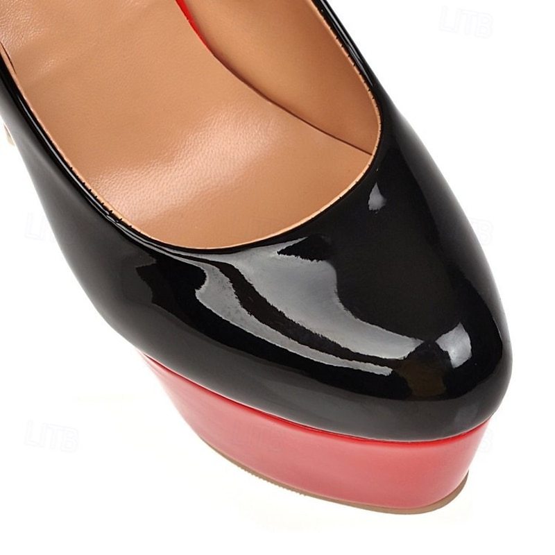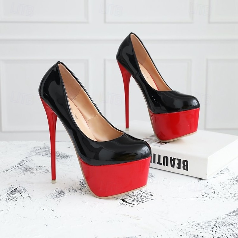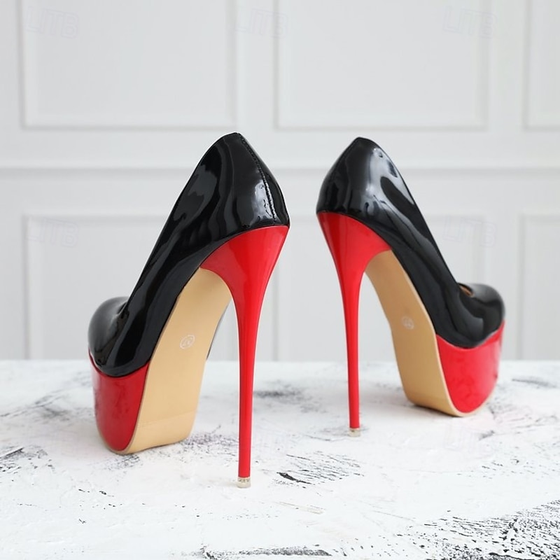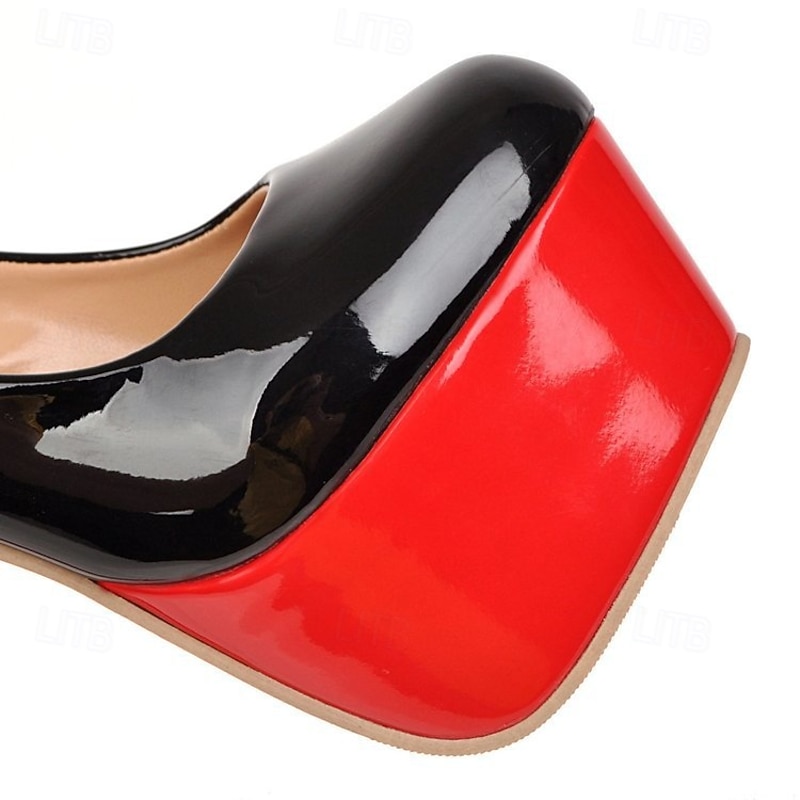 : The contrasting black upper and vibrant red platform, paired with a stiletto heel, create a bold, sophisticated look. This color block design is sure to capture attention, adding a touch of drama and elegance to any outfit. The sleek, minimalistic style is ideal for those who love a sexy, polished finish.