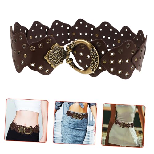 More information about Vintage Leaf Embellished Fashion Belt for Women Wide Waist Belt for Comfortable All Day Wear Boho Style Accessories for Festival Outfits Brown