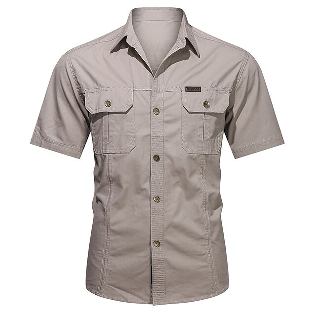 Men's Shirt Button Up Shirt Casual Shirt Work Shirt Cargo Shirt Black Yellow Army Green Royal Blue Blue Short Sleeve Plain Turndown Street Casual Button-Down Clothing Apparel Cotton Fashion Classic 9