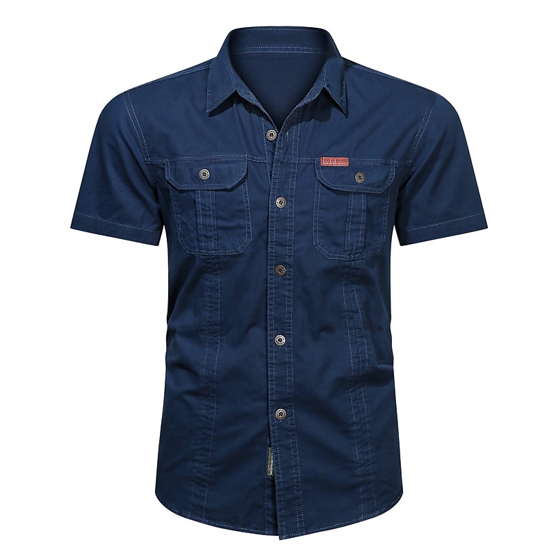 More information about Men's Shirt Button Up Shirt Casual Shirt Work Shirt Cargo Shirt Black Yellow Army Green Royal Blue Blue Short Sleeve Plain Turndown Street Casual Button-Down Clothing Apparel Cotton Fashion Classic
