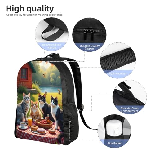 HOT ! Comfort Fit Unisex Group of Cats Sitting Around Picnic Table Donuts Fruit Backpack Durable Commute Travel Adventures 16 in