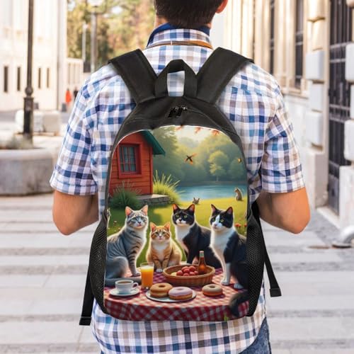 Comfort Fit Unisex Group of Cats Sitting Around Picnic Table Donuts Fruit Backpack Durable Commute Travel Adventures 16 in 1