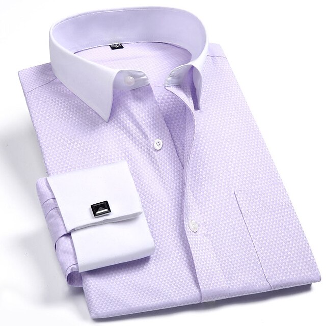 More information about Men's Shirt Dress Shirt French Cuff Shirt Plain Office & Career Wedding Party White Pink Blue Light Purple Long Sleeve Lapel Spring & Fall Clothing Apparel Front Pocket