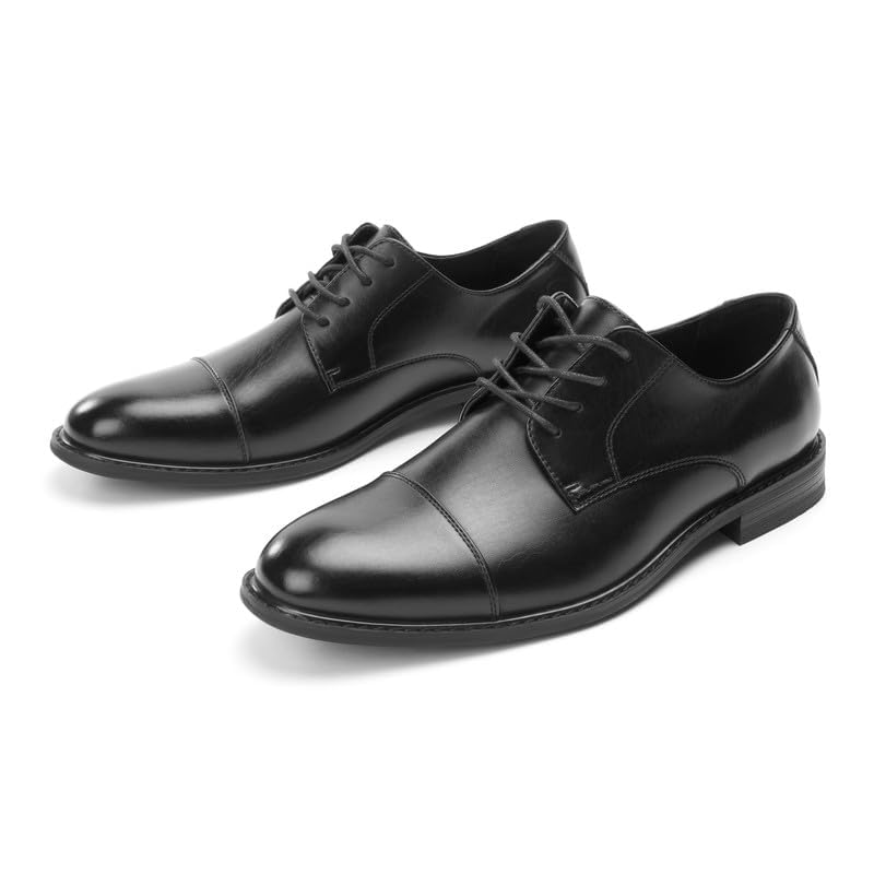 Mens Classic Dress Oxfords, Wingtip Prince Modern Formal Lace Up Shoes, Round Toe, TPR Outsole 1