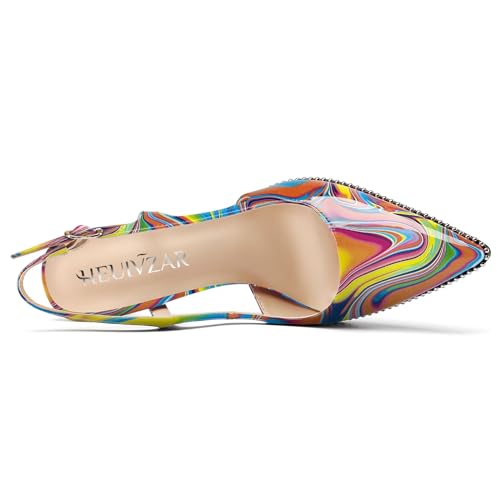 HEUIVZAR Womens Beaded Pumps Slingback Stiletto High Heels Pointed Toe Slip-on Sandals Adjustable Buckle Pearls Patent Leather Dress Shoes 3.5 Inches Heels