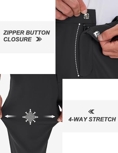 Fabric type: 92% Polyester, 8% SpandexOrigin: ImportedClosure type: ButtonRise style: Mid Rise【Fleece Lined Pants】: These golf pants are made of 92%polyester and 8%spandex fabric with soft lining, effectively locks the heat and wicking treatment, provides excellent warmth and snug from the inside out in extreme winter conditions.【Water Resistant & 4-Way Stretch】: Mens insulated pants are designed with water-repellent coating that effectively protects against rain and snow, keep you cool and dry on the course. The 4-way stretch fabric provides comfort and flexibility, allow unrestricted movement from your first swing to your last.【4 Functional Pockets】: Men's warm work pants have 2 convenient deep front pockets and 2 rear pockets, one of which is a snap pocket that can conveniently store your phone, wallet, golf gloves or scorecard, and free your hands when golfing or business activity.【Tapered Legs】: This golf fleece lined pants feature an elastic waistband with belt loop="loop" and zipper closure to provide a personalized fit. Tapered legs and a 3D cut are suitable for most men's body types, providing optimal comfort and mobility during every swing.【Winter Pants For Men】: Men's dress pants is suitable for golf, travel, walking, hiking, camping, also for business offices and daily wear. The perfect combination of warmth and comfort for all your indoor and outdoor winter sports and activities. Perfect for everyday use. excellent materials and excellent craftsmanship ensure long-lasting durability.