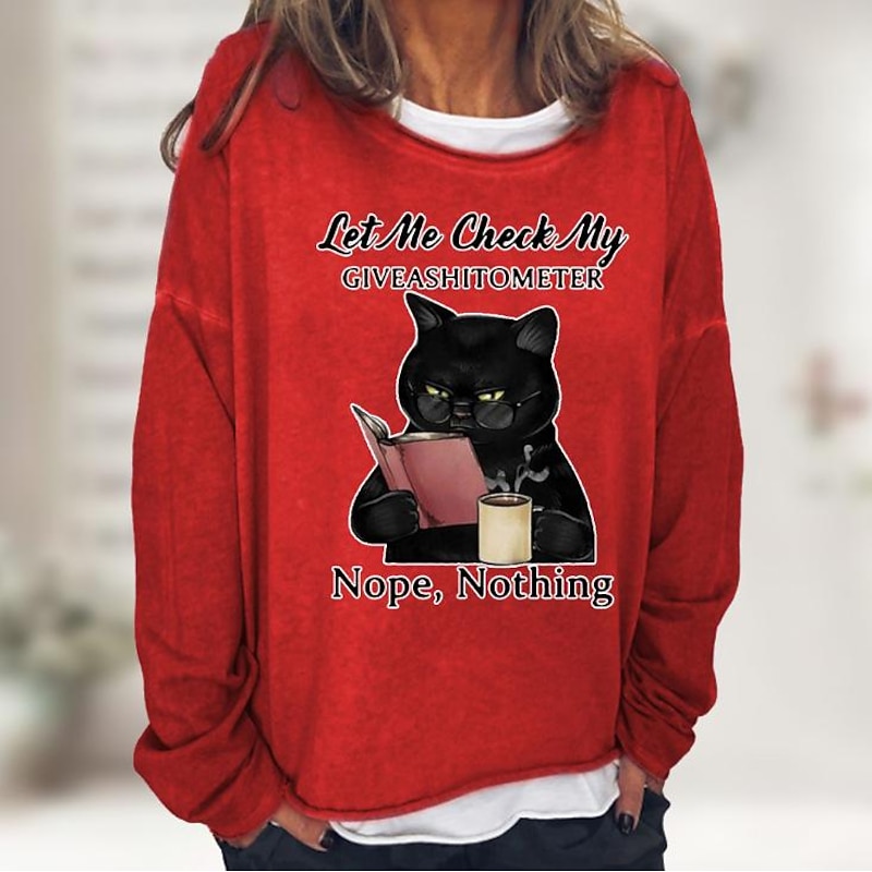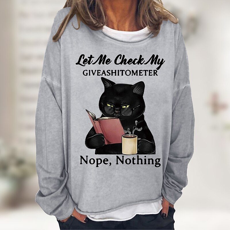 Women's Shirt Cat Print Casual Sports Basic Long Sleeve Round Neck Black Fall & Winter Comfrt Breathable Soft Fabric 19