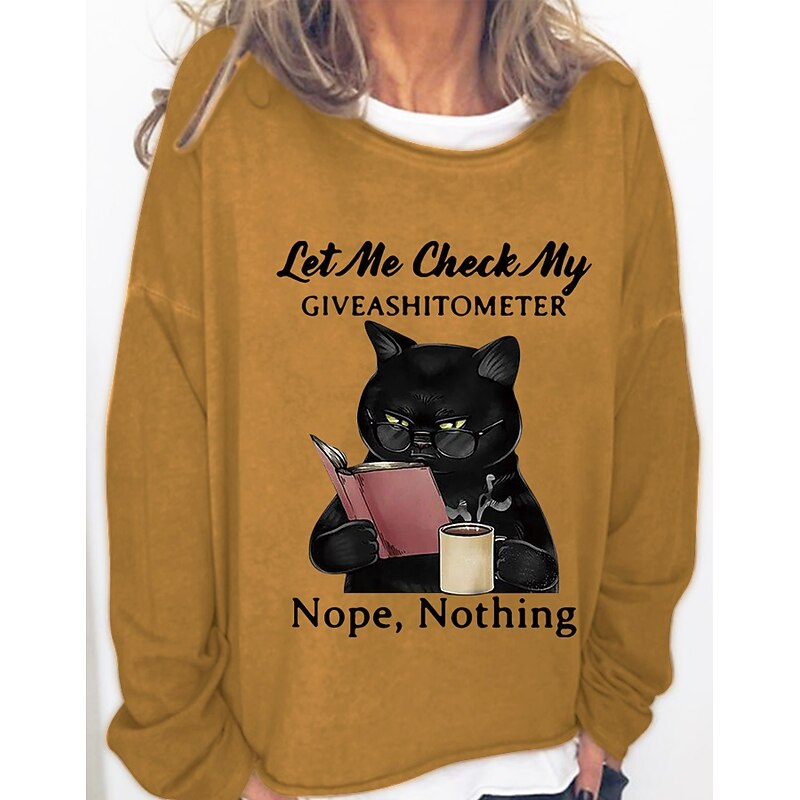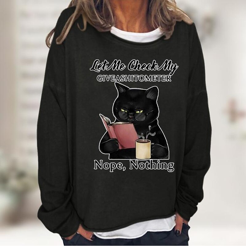 HOT ! Women's Shirt Cat Print Casual Sports Basic Long Sleeve Round Neck Black Fall & Winter Comfrt Breathable Soft Fabric