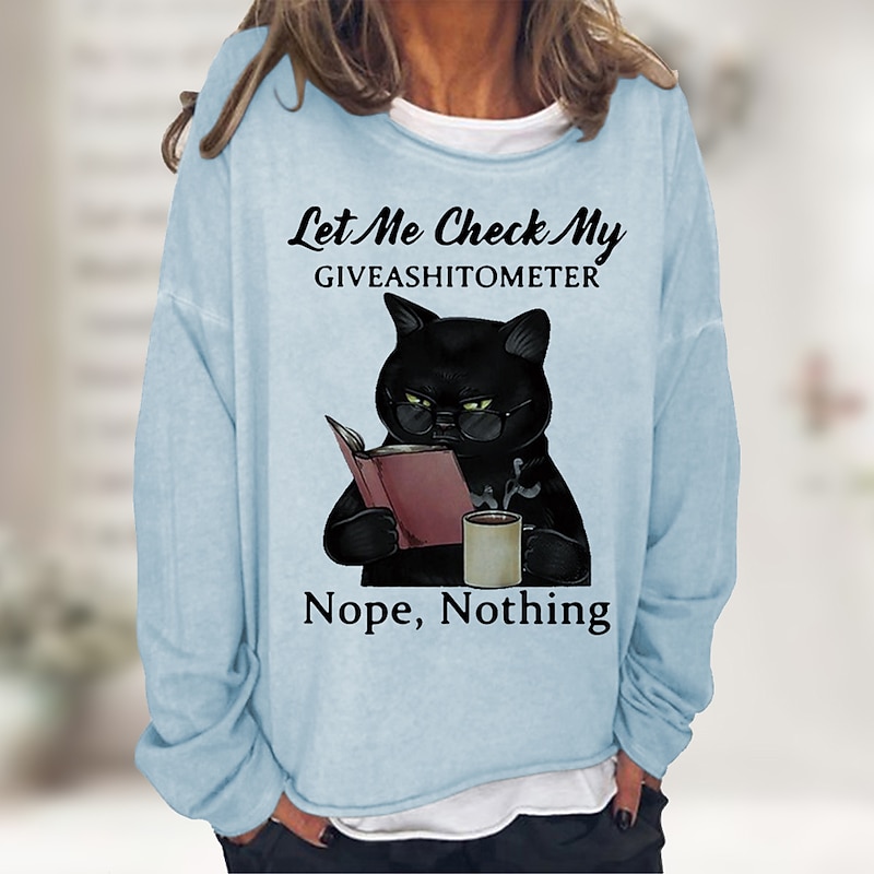 Women's Shirt Cat Print Casual Sports Basic Long Sleeve Round Neck Black Fall & Winter Comfrt Breathable Soft Fabric 13