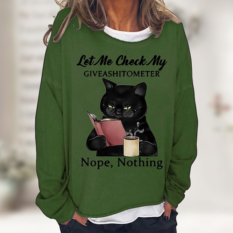 Women's Shirt Cat Print Casual Sports Basic Long Sleeve Round Neck Black Fall & Winter Comfrt Breathable Soft Fabric 22