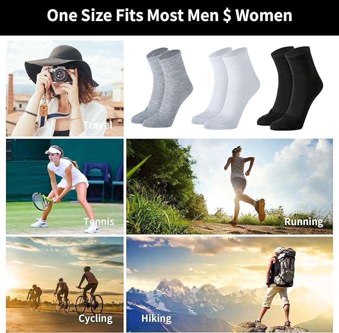 • OCCASIONS - Our quarter running socks for men and women, are suitable for outdoor activities and daily use, such as running, walking, exercising, tennis, fitness, traveling, hiking, biking, outdoor sports, and so on