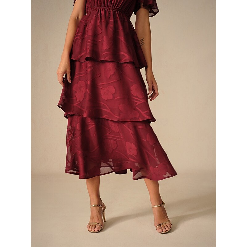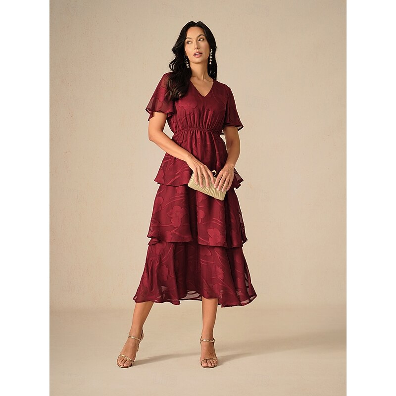 More information about Women's Maxi Dress A Line Dress Elegant Formal Flutter Sleeve Wedding Guest Cocktail Party Regular Fit Plain Short Sleeve V Neck Wine Summer