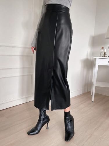 • Midi / Plain / Office, Formal??&?Evening / Unlined / Ultra High Waist / Polyester / Elegant / Black / No / PU Leather / Regular Fit / Split, Zipper